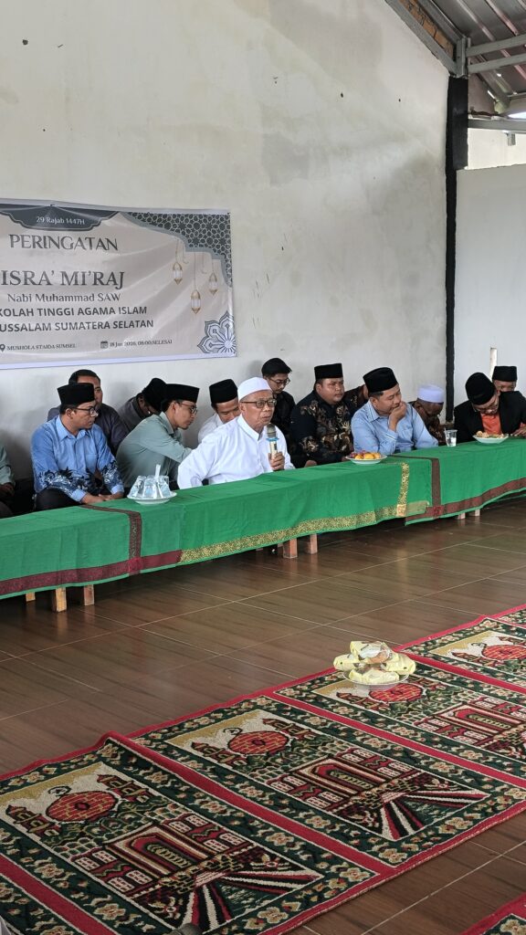 Tugumulyo, Ogan Komering Ilir, 18 Januari 2026 – mahasiswa, dosen, alumni, serta masyarakat sekitar memadati Musholla Al-Ikhlas di lingkungan Sekolah Tinggi Agama Islam (STAI) Darussalam Sumatera Selatan. untuk mengikuti peringatan Isra Miraj Nabi Muhammad SAW. Acara bertajuk mauidzotul hasanah ini diisi oleh Abah K.H. Nurhadi Hizbullah, yang menyampaikan ceramah penuh hikmah tentang makna mendalam peristiwa mulia tersebut.